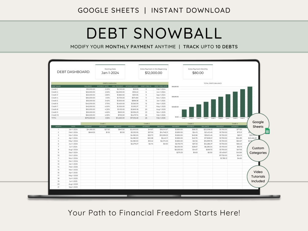 Are you ready to break free from the chains of debt and experience the sweet taste of financial liberation? Look no further! Introducing our powerful Debt Snowball Calculator Spreadsheet Template for Google Sheets โ the ultimate tool designed to empower you on your quest to become debt-free.