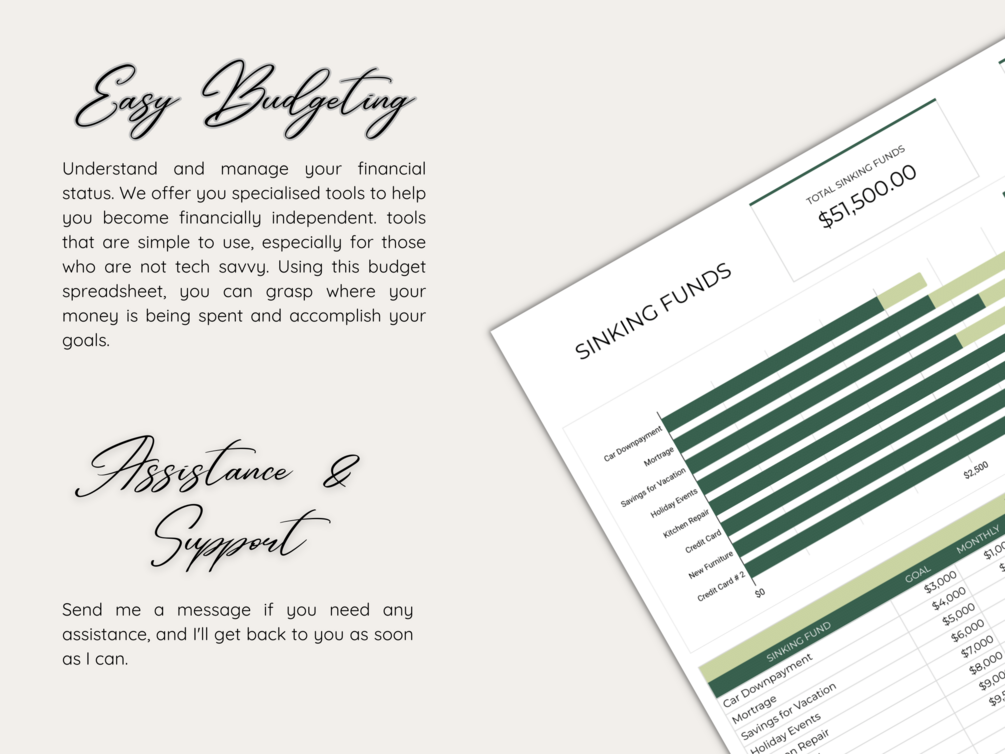 ๐ฎ๐ง๐๐ฌ ๐๐๐ง๐๐ ๐๐ฆ๐๐ง๐ญ: Take control of your financial goals with the Sinking Funds Tracker Spreadsheet. This tool empowers you to create dedicated funds for various purposes like vacations, emergencies, or major expenses. Easily track your contributions and progress, ensuring you're financially prepared when these needs arise. Achieve peace of mind and financial stability with this dedicated tracker.